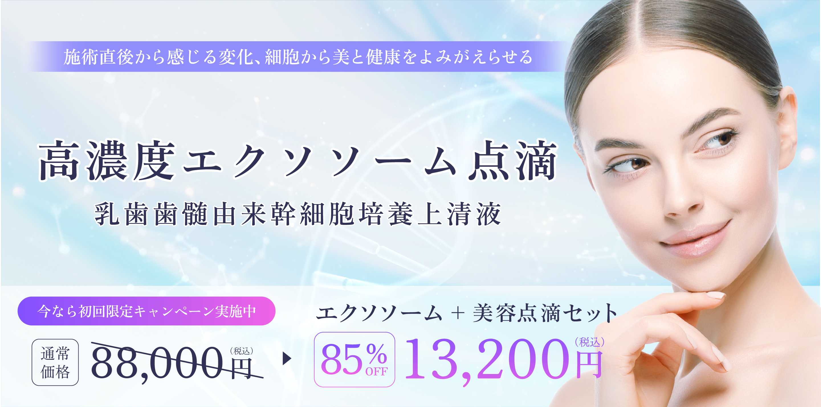 エクソソームは、細胞の活性化や組織再生の促進、血流改善などに寄与します。中でも、歯髄幹細胞は多くの成長因子を含むことがわかっており、エイジングケアや全身の健康回復を目的とした治療に最適です。